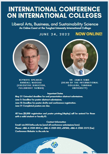 Conference ProgramIn Asia and throughout the world, the emergence of a multicultural and internationally mobile workforce has changed the face of undergraduate education. Universities are witnessing unprecedented demand from students seeking to earn their degrees in a foreign language. Many schools have instituted international colleges that allow students to achieve this goal, while learning side by side with classmates of different nationalities. International colleges are natural distribution hubs for study-abroad programs that enable learners to complete parts of their coursework in other countries. Input from academics, students, and industry professionals is needed to chart the future of international colleges. The Tunghai University International College cordially invites you to participate its second conference on international colleges.